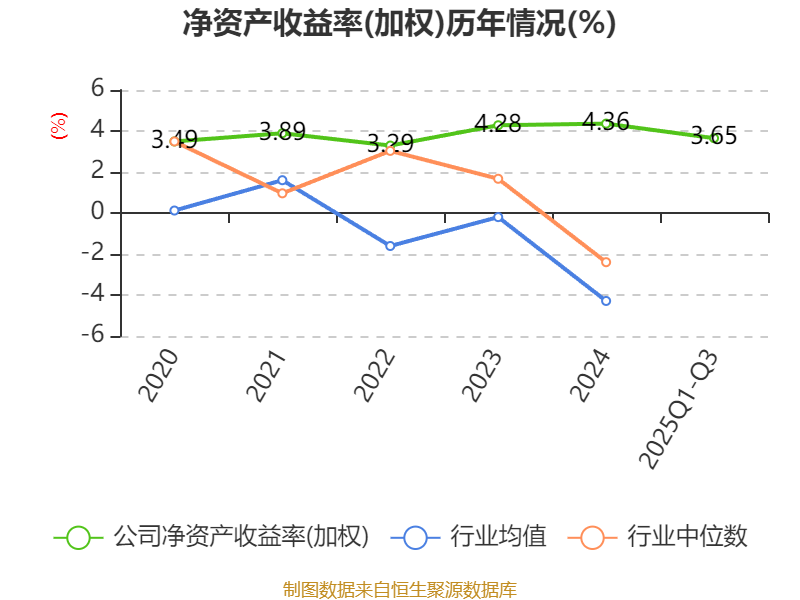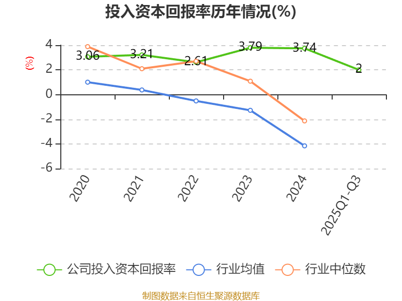 盈利能力方面, 2025年前三季度公司加权平均净资产收益率为3.65%,同比上升0.73个百分点。公司2025年前三季度投入资本回报率为2%,较上年同期下降0.37个百分点。