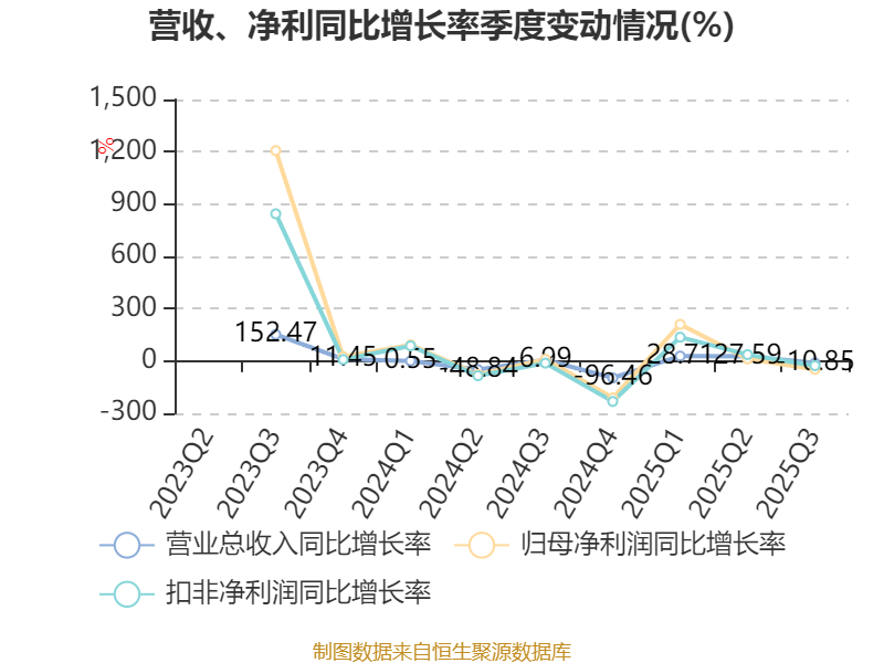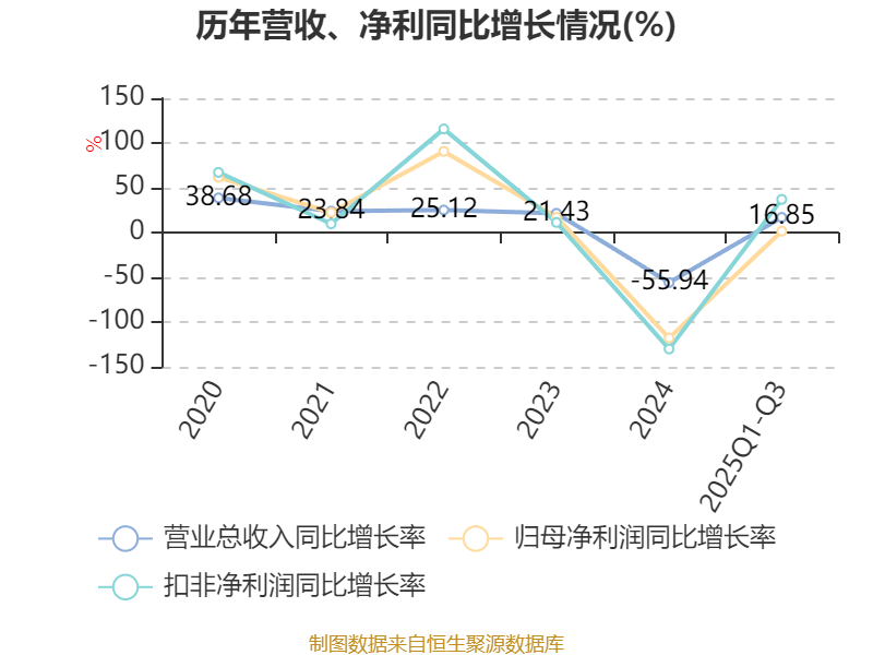资产重大变化方面,截至2025年三季度末,公司固定资产较上年末增加50.65%,占公司总资产比重上升8.66个百分点;在建工程合计较上年末减少83.64%,占公司总资产比重下降7.04个百分点;货币资金较上年末减少66.38%,占公司总资产比重下降4.6个百分点;交易性金融资产合计较上年末减少31.11%,占公司总资产比重下降4.3个百分点。