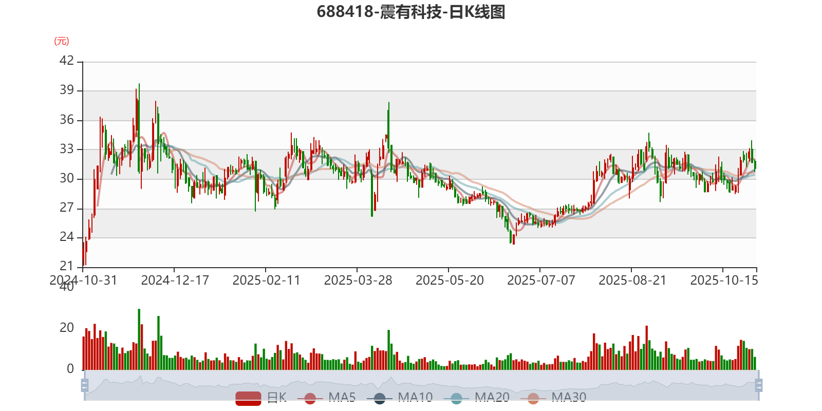中证智能财讯震有科技(688418)10月31日披露2025年第三季度报告。前三季度公司实现营业总收入5.09亿元,同比下降11.78%;归母净利润亏损4718.51万元,上年同期盈利1660.62万元;扣非净利润亏损6176.49万元,上年同期盈利22.86万元;经营活动产生的现金流量净额为-8700.27万元,上年同期为-3880.15万元;报告期内,震有科技基本每股收益为-0.245元,加权平均净资产收益率为-5.30%。