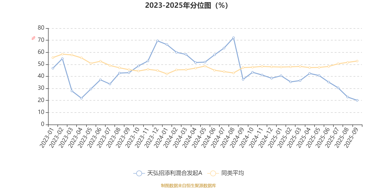 通过所选区间该基金净值增长率分位图,可以观察该基金与同类基金业绩比较情况。图为坐标原点到区间内某时点的净值增长率在同类基金中的分位数。