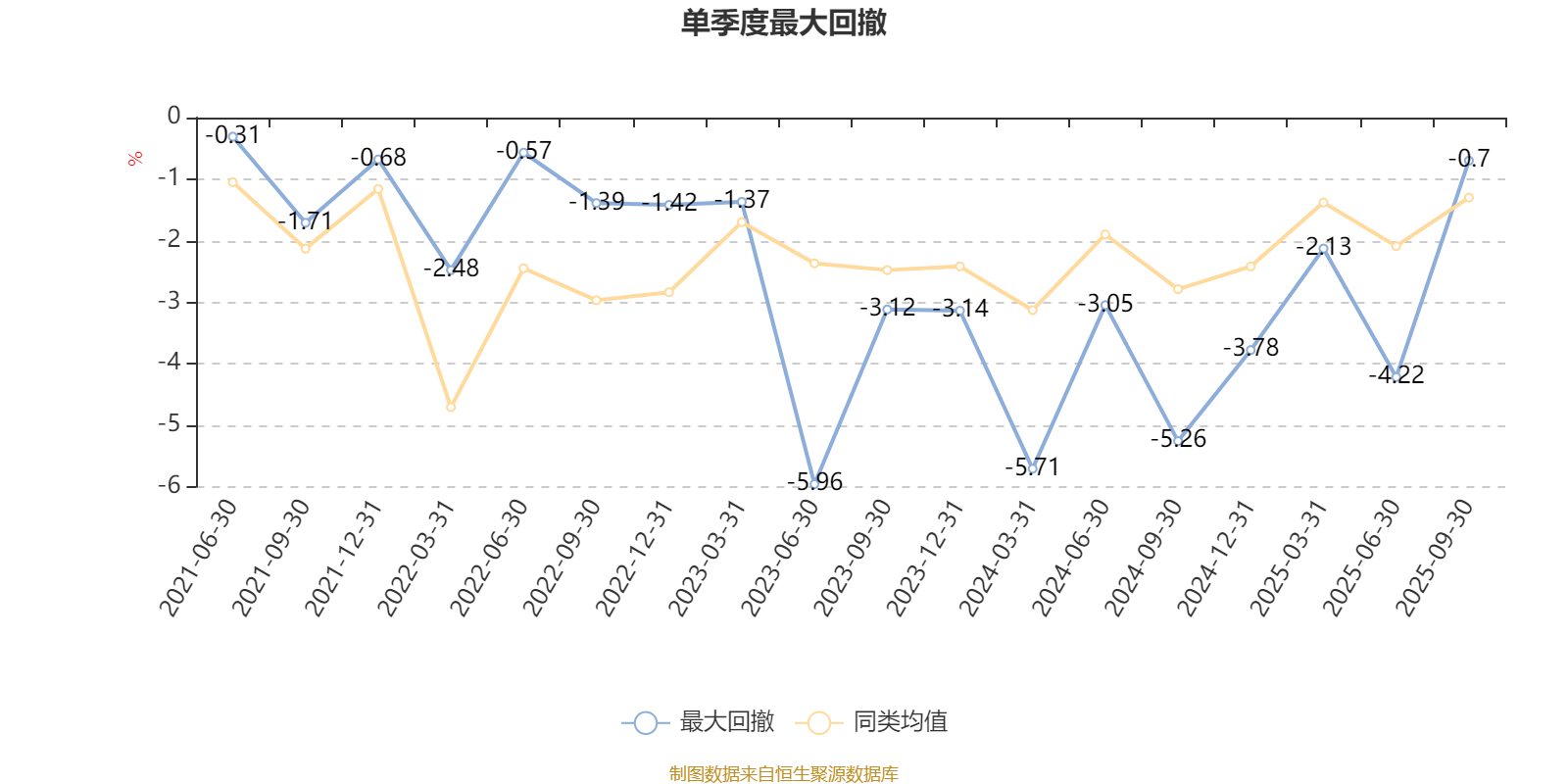 通过所选区间该基金净值增长率分位图,可以观察该基金与同类基金业绩比较情况。图为坐标原点到区间内某时点的净值增长率在同类基金中的分位数。