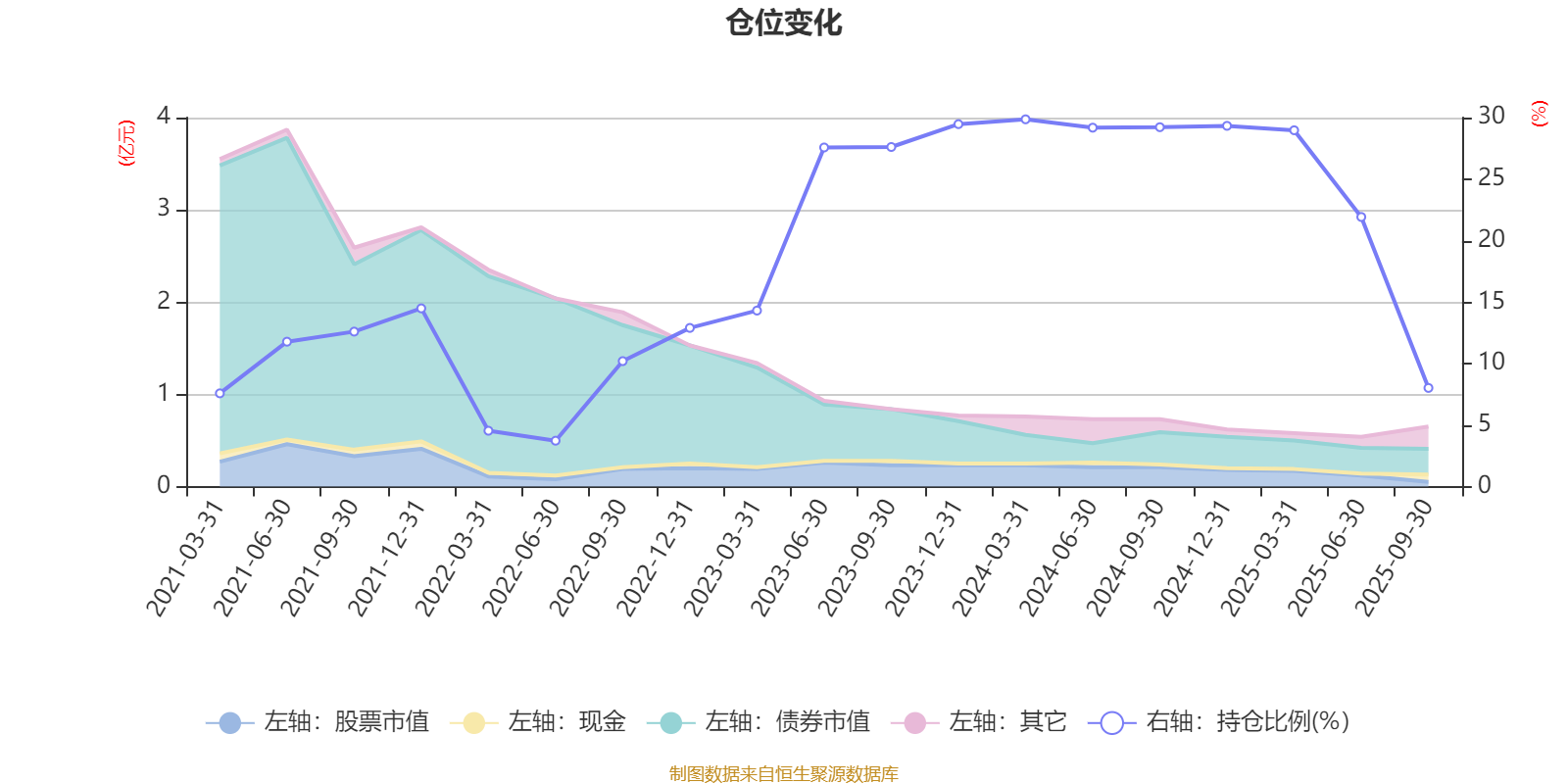 据定期报告数据统计,近三年平均股票仓位为24.03%,同类平均为19.14%。2024年一季度末基金达到29.86%的最高仓位,2022年上半年末最低,为3.73%。