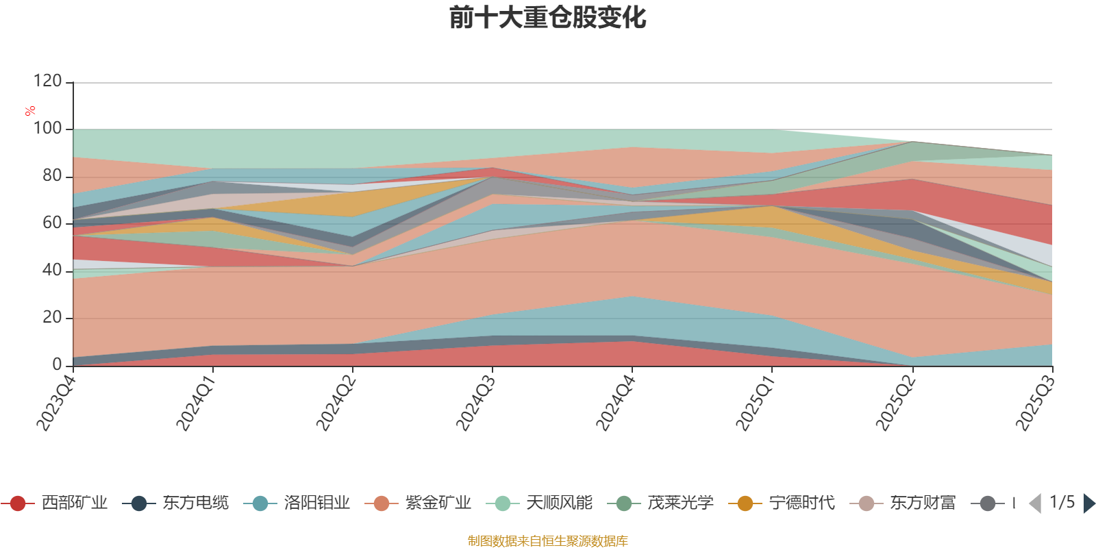该基金持股集中度较高,近2年前十大重仓股集中度长期超过60%。截至2025年三季度末,基金重仓股分别是紫金矿业、中芯国际、中国平安、圆通速递、洛阳钼业、华海清科、申通快递、宁德时代。