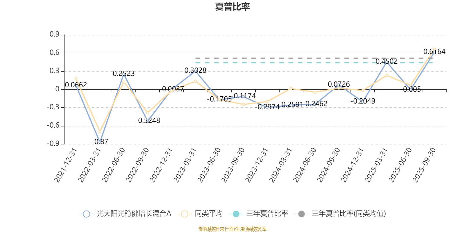 截至9月30日,基金近三年夏普比率为0.4399,位于同类可比基金76/119。