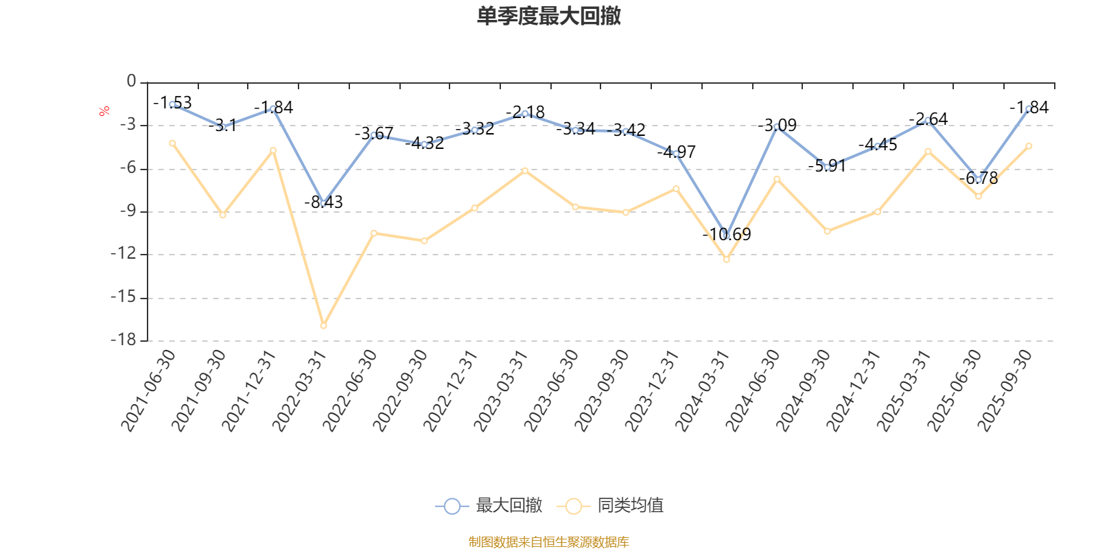 截至10月27日,基金近三年最大回撤为17.82%,同类可比基金排名23/117。单季度最大回撤出现在2024年一季度,为10.69%。