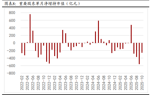 受假期因素影响,10月新成立的偏股型基金份额环比回落,全市场日均成交额环比下降。但10月A股市场重要股东净减持规模下降、A股限售解禁规模环比下降。证监会主席吴清在2025金融街论坛年会上表示,证监会推进公募基金改革,推动企业年金、保险资金等全面落实长周期考核,预计将为市场引入以长期价值投资为导向的增量资金,带动市场形成健康发展的长期上行格局。总体看,A股市场流动性有望持续好转。