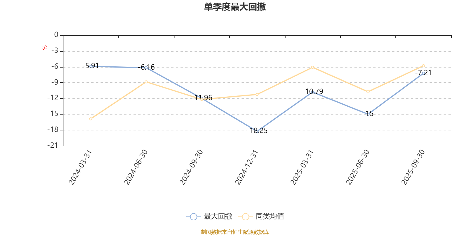 截至10月28日,基金成立以来最大回撤为26.84%。单季度最大回撤出现在2024年四季度,为18.25%。