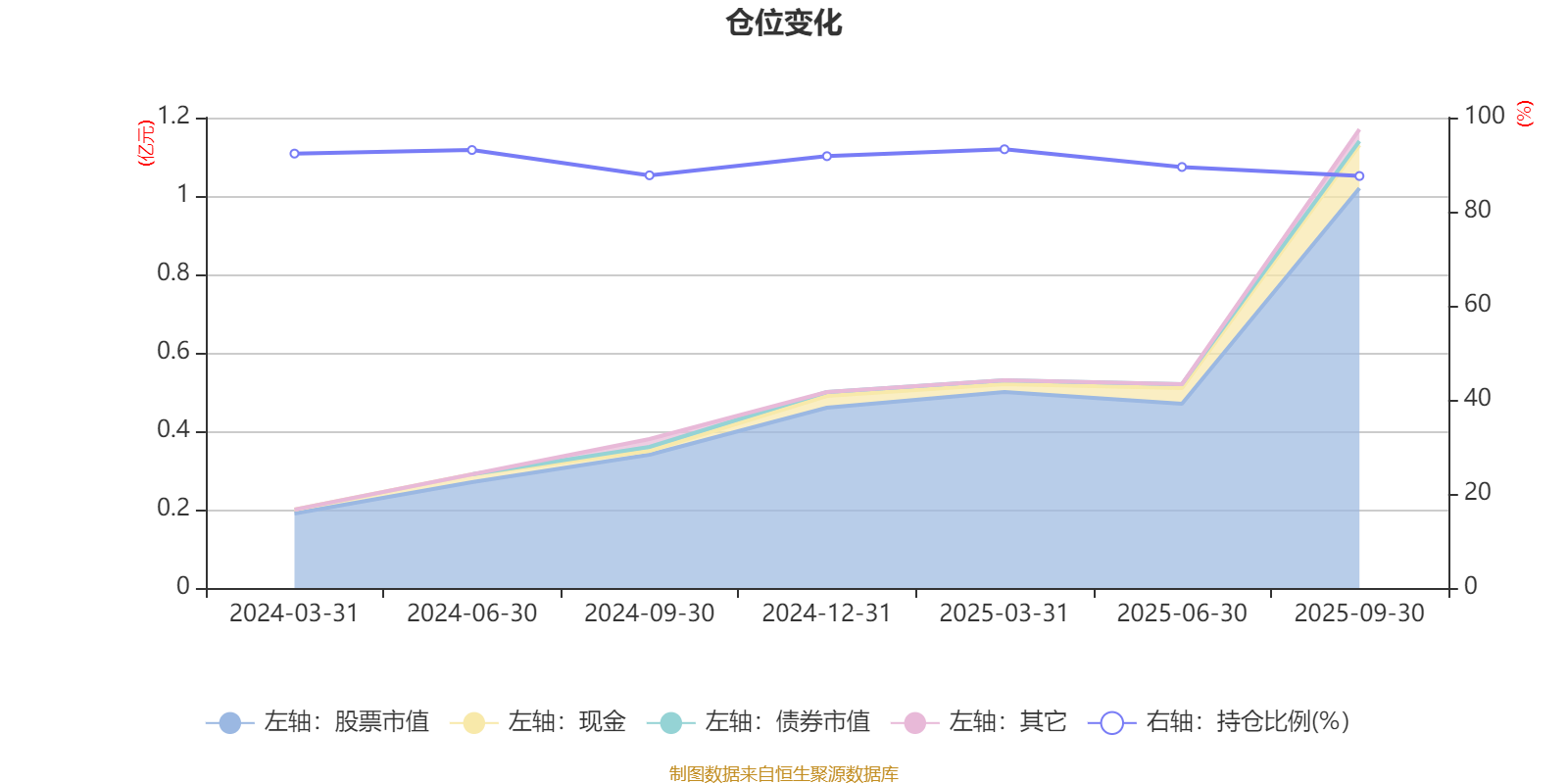据定期报告数据统计,成立以来平均股票仓位为90.76%,同类平均为83.73%。2025年一季度末基金达到93.27%的最高仓位,2025年三季度末最低,为87.58%。