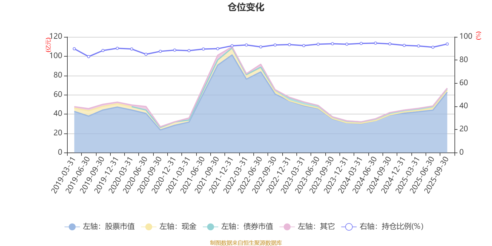据定期报告数据统计,近三年平均股票仓位为93.34%,同类平均为86.15%。2024年上半年末基金达到94.64%的最高仓位,2019年上半年末最低,为82.97%。