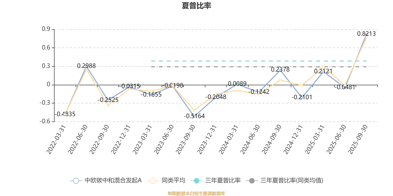 截至9月30日,基金近三年夏普比率为0.386,位于同类可比基金25/60。