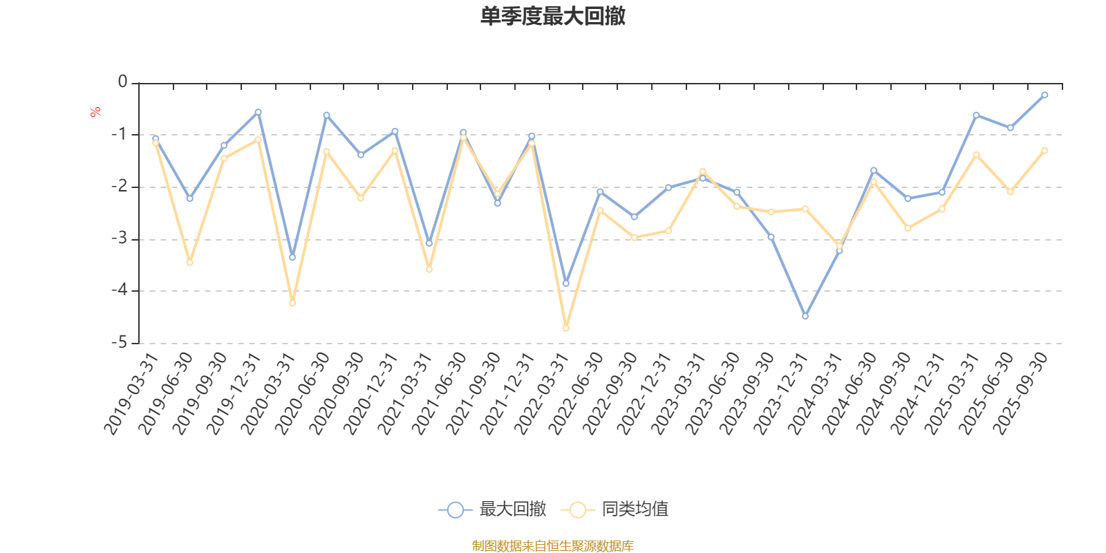 截至10月29日,基金近三年最大回撤为8.21%,同类可比基金排名354/534。单季度最大回撤出现在2023年四季度,为4.48%。