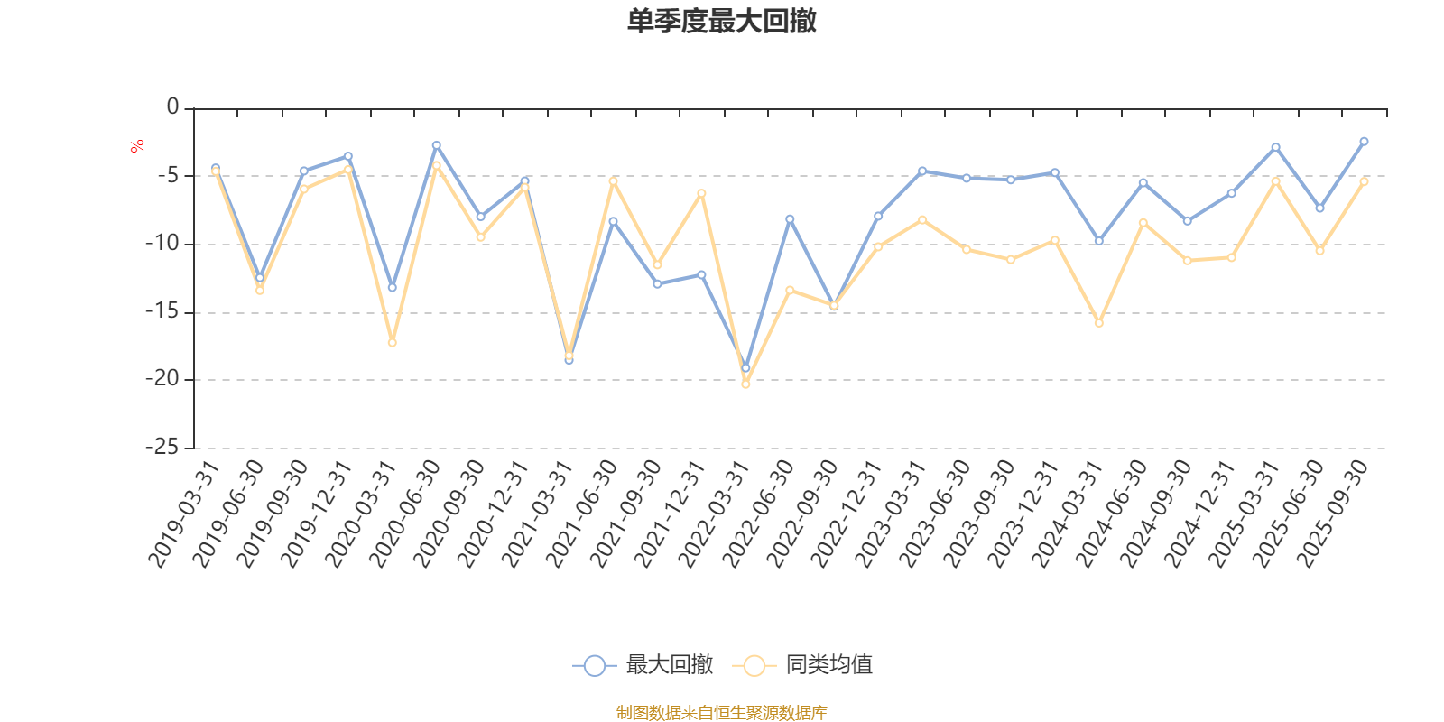 截至10月29日,基金近三年最大回撤为14.63%,同类可比基金排名7/251。单季度最大回撤出现在2022年一季度,为19.1%。
