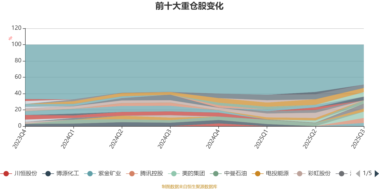 截至2025年三季度末,基金十大重仓股分别是美的集团、腾讯控股、渝农商行、中国有色矿业、华通线缆、中天科技、中国海洋石油、国邦医药、紫金矿业、电投能源。
