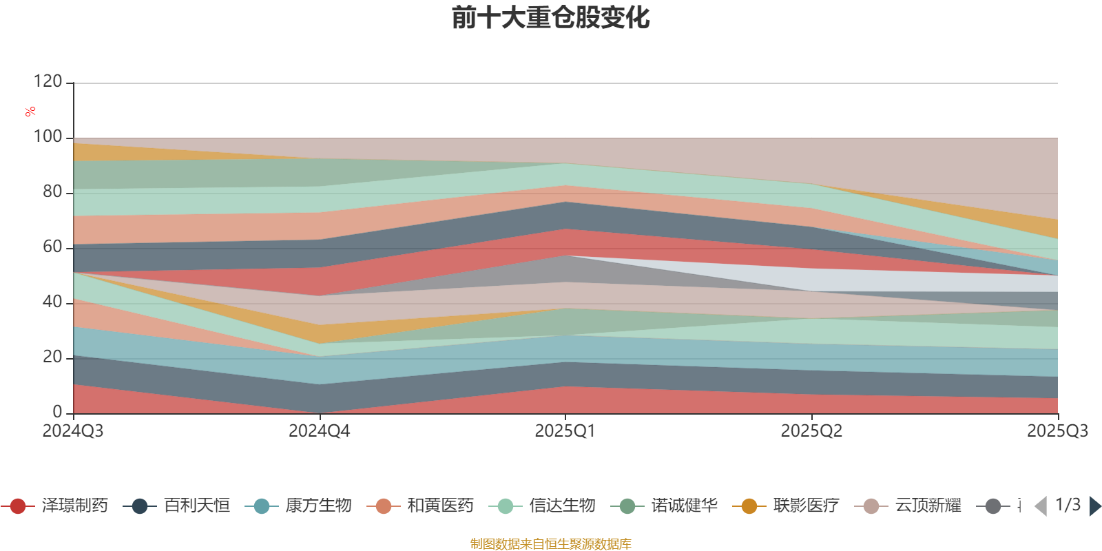 该基金持股集中度较高。截至2025年三季度末,基金十大重仓股分别是康方生物、信达生物、百利天恒、科伦博泰生物-B、福瑞股份、中国生物制药、诺诚健华、益方生物、三生制药、泽璟制药。