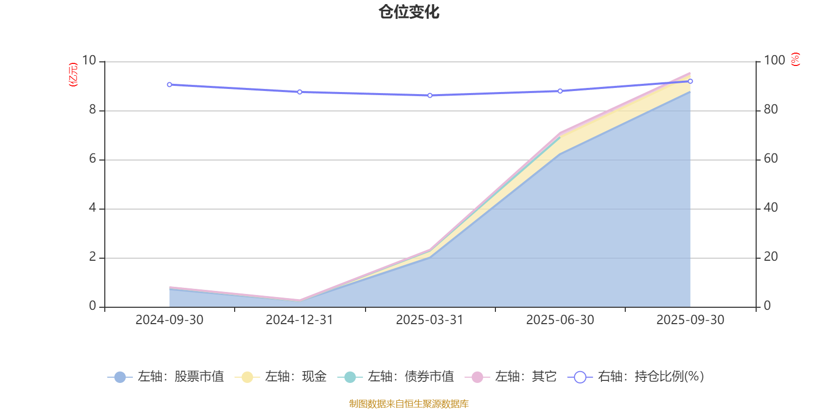 据定期报告数据统计,成立以来平均股票仓位为88.8%,同类平均为88.38%。2025年三季度末基金达到91.9%的最高仓位,2025年一季度末最低,为86.12%。