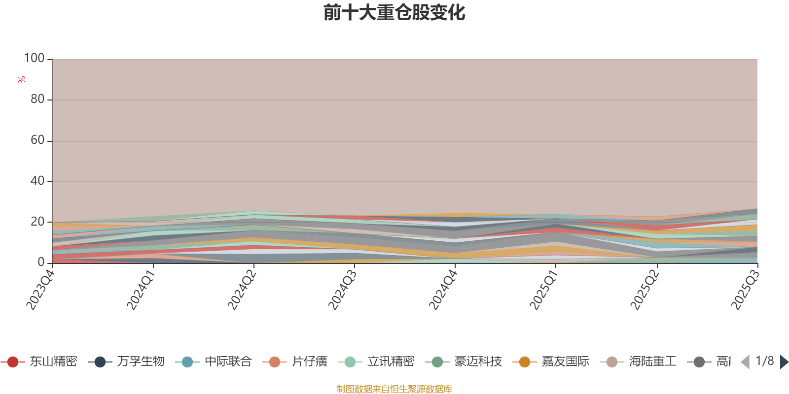 截至2025年三季度末,基金十大重仓股分别是吉比特、新强联、高能环境、蔚蓝锂芯、涛涛车业、中际联合、索通发展、瑞联新材、科沃斯、骄成超声。