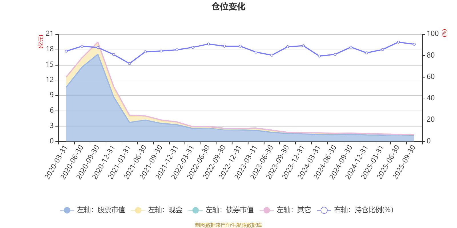 据定期报告数据统计,近三年平均股票仓位为85.88%,同类平均为85.66%。2025年上半年末基金达到92.59%的最高仓位,2021年一季度末最低,为72.65%。