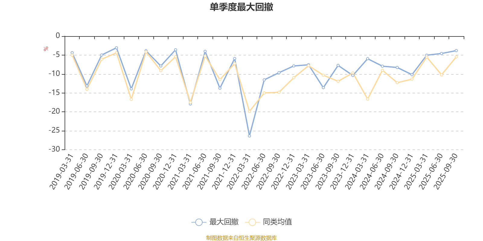 截至10月27日,基金近三年最大回撤为22.91%,同类可比基金排名15/87。单季度最大回撤出现在2022年一季度,为26.4%。