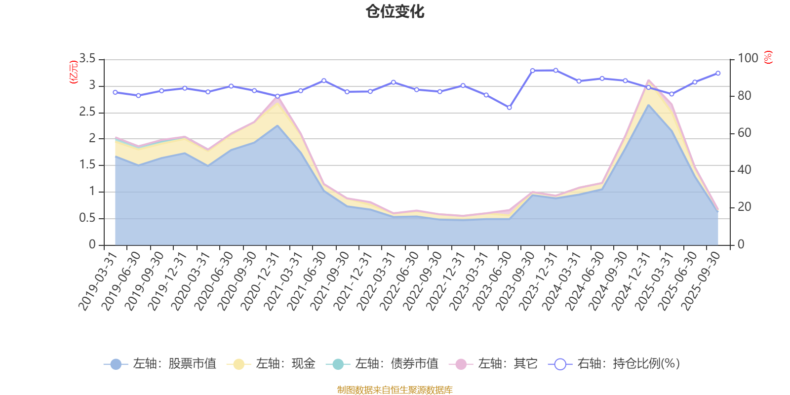 据定期报告数据统计,近三年平均股票仓位为86.78%,同类平均为88.23%。2023年末基金达到94.04%的最高仓位,2023年上半年末最低,为74.04%。