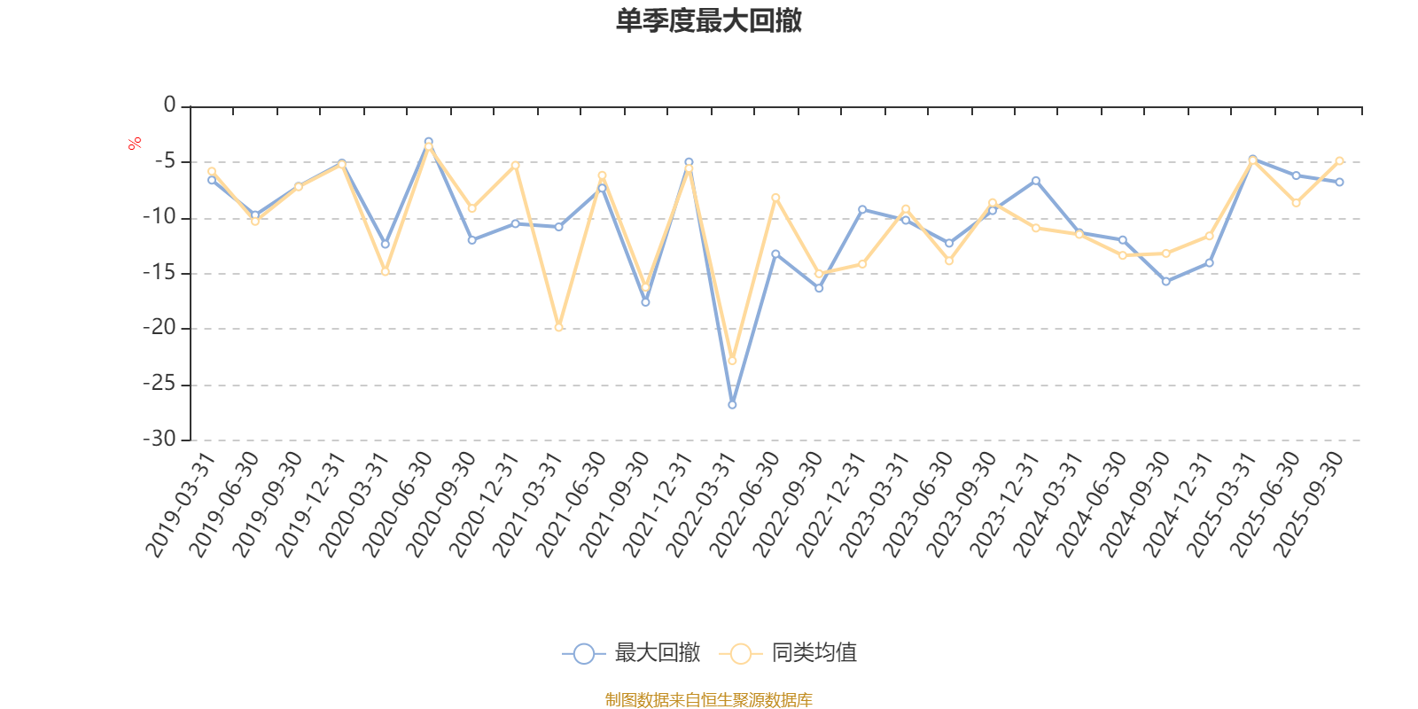 截至10月27日,基金近三年最大回撤为40.25%,同类可比基金排名26/40。单季度最大回撤出现在2022年一季度,为26.83%。