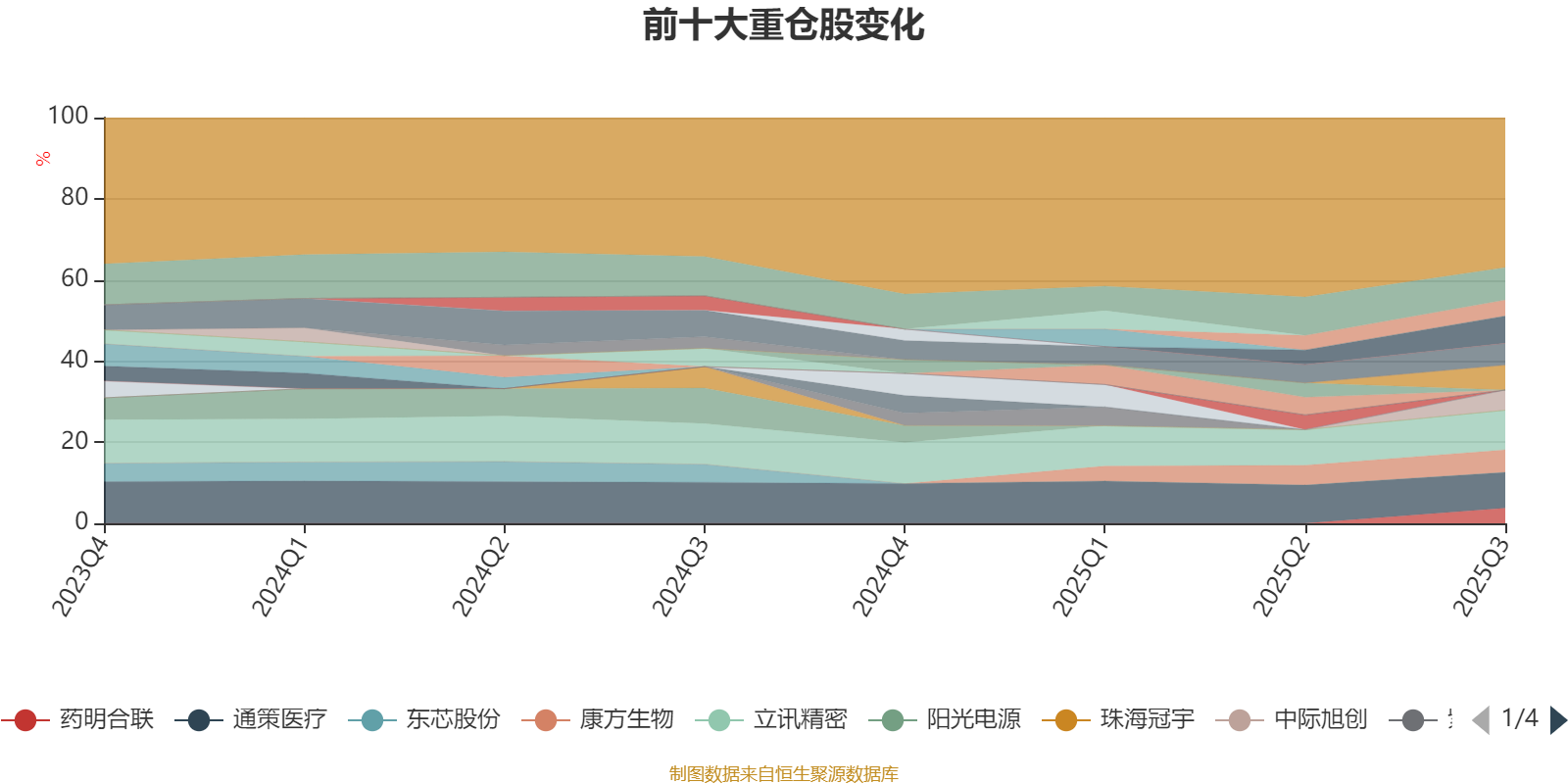 该基金持股集中度较高。截至2025年三季度末,基金十大重仓股分别是立讯精密、通策医疗、兆易创新、天孚通信、江西铜业股份、康方生物、英科医疗、中际旭创、禾望电气、药明合联。