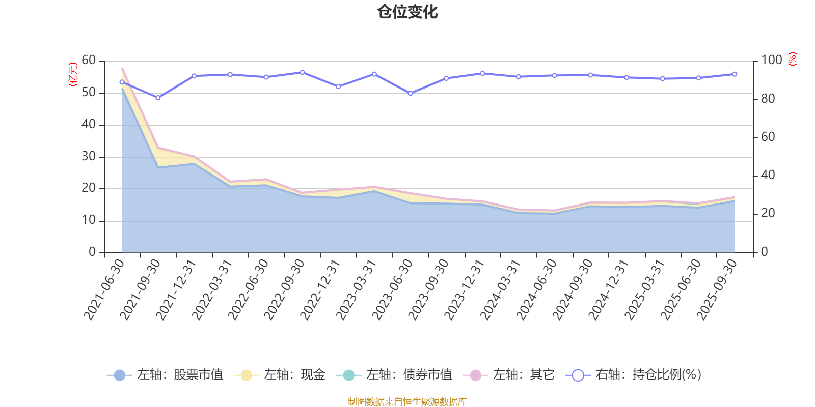 据定期报告数据统计,近三年平均股票仓位为90.92%,同类平均为87.62%。2022年三季度末基金达到94.1%的最高仓位,2021年三季度末最低,为80.88%。