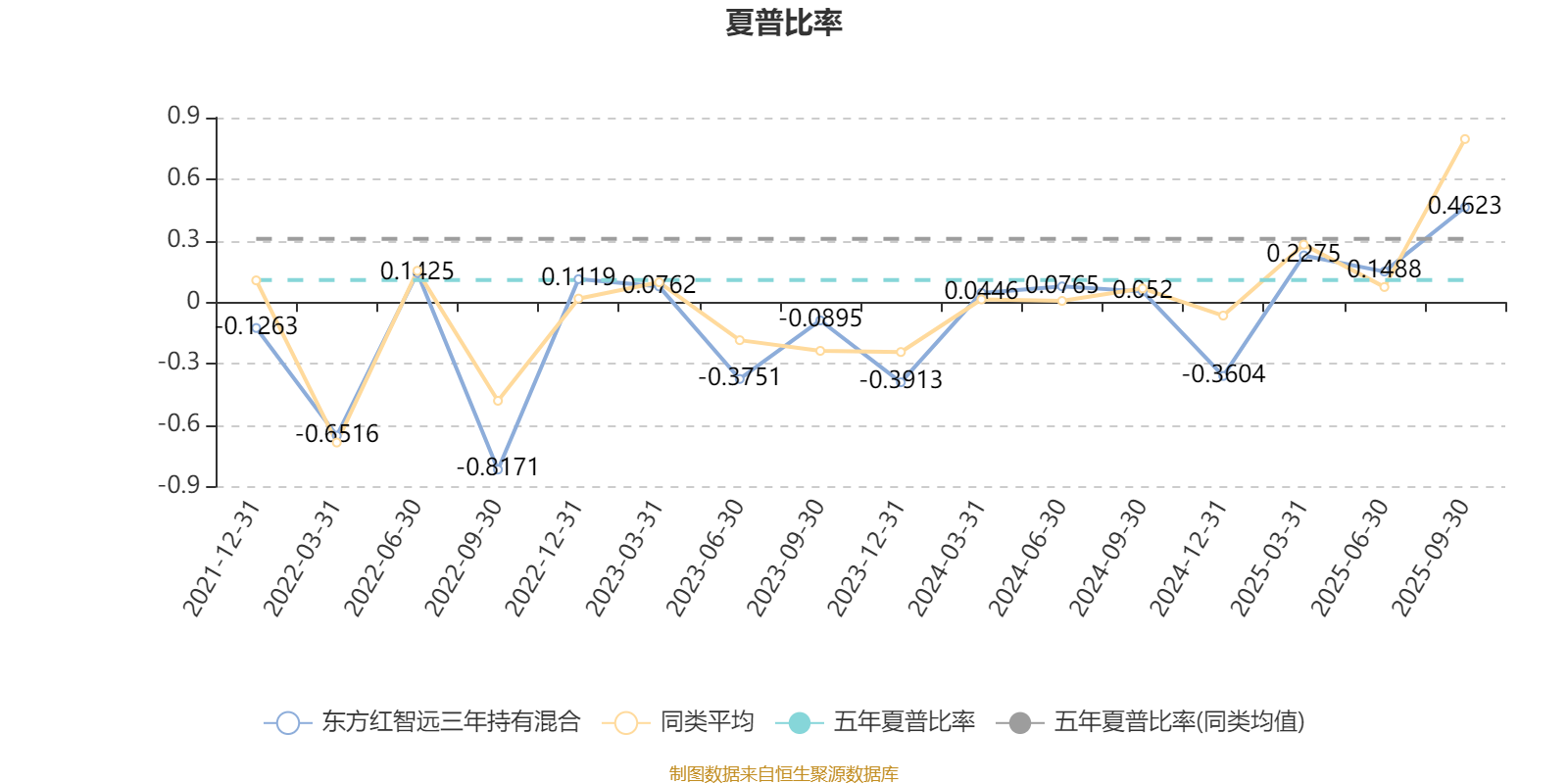 截至9月30日,基金近三年夏普比率为0.3435,位于同类可比基金99/125。
