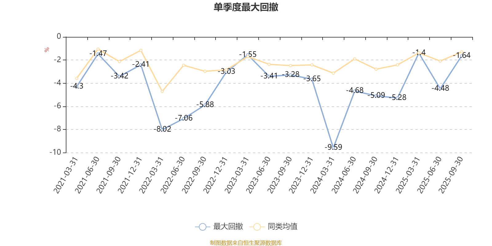 截至10月27日,基金近三年最大回撤为14.84%,同类可比基金排名488/535。单季度最大回撤出现在2024年一季度,为9.59%。