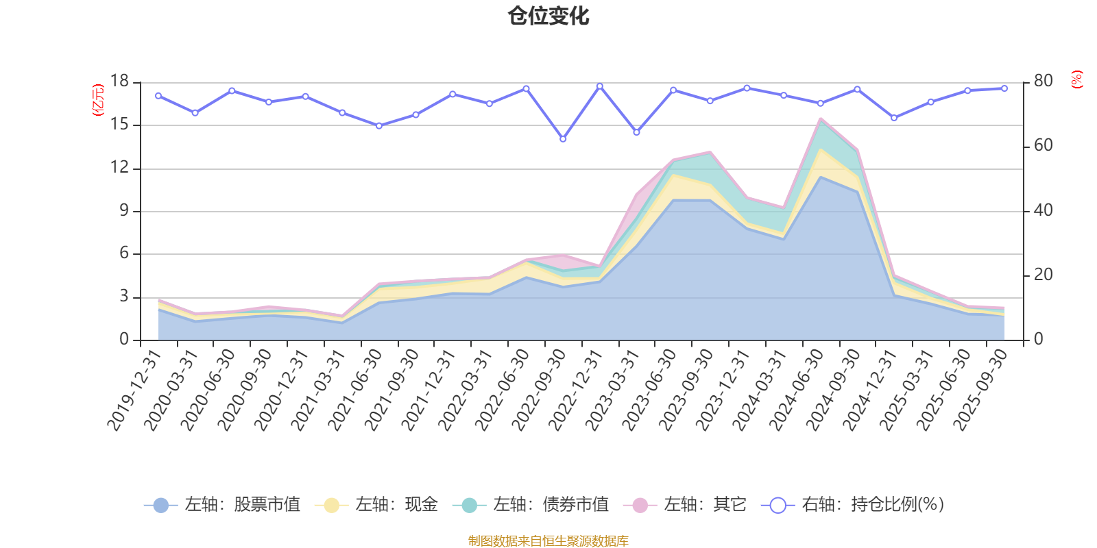 据定期报告数据统计,近三年平均股票仓位为74.89%,同类平均为72.35%。2022年末基金达到78.78%的最高仓位,2022年三季度末最低,为62.4%。