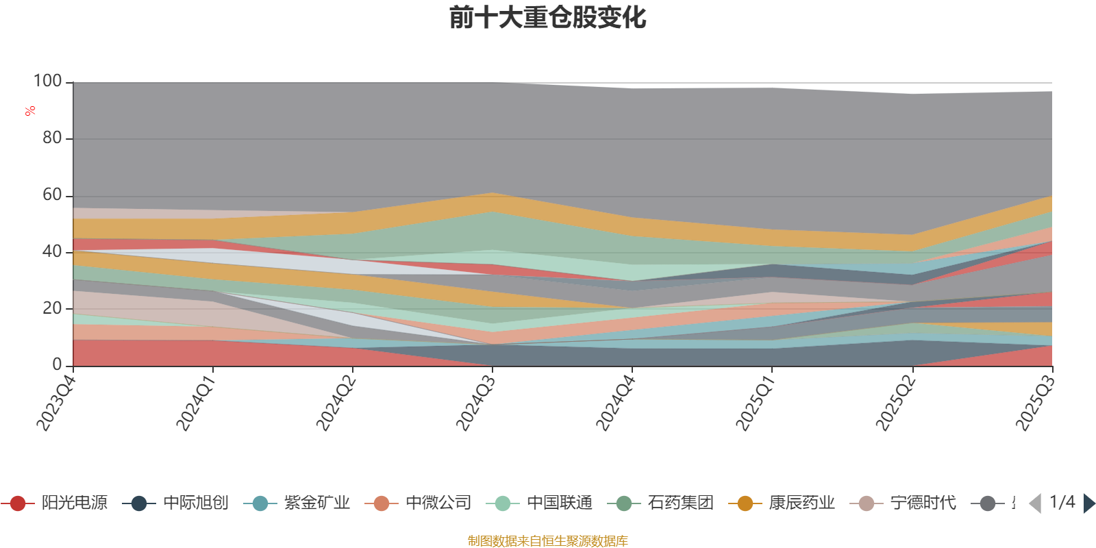 该基金持股集中度较高。截至2025年三季度末,基金十大重仓股分别是沪电股份、阳光电源、金斯瑞生物科技、中国船舶、天孚通信、三生制药、吉利汽车、康辰药业、中科曙光、紫金矿业。