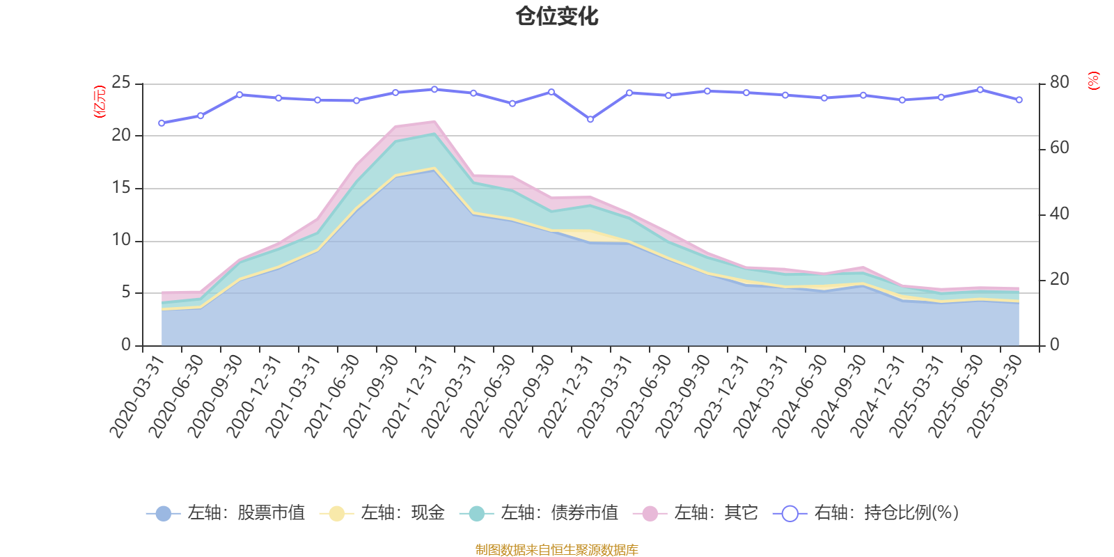 据定期报告数据统计,近三年平均股票仓位为75.84%,同类平均为67.37%。2021年末基金达到78.24%的最高仓位,2020年一季度末最低,为67.93%。