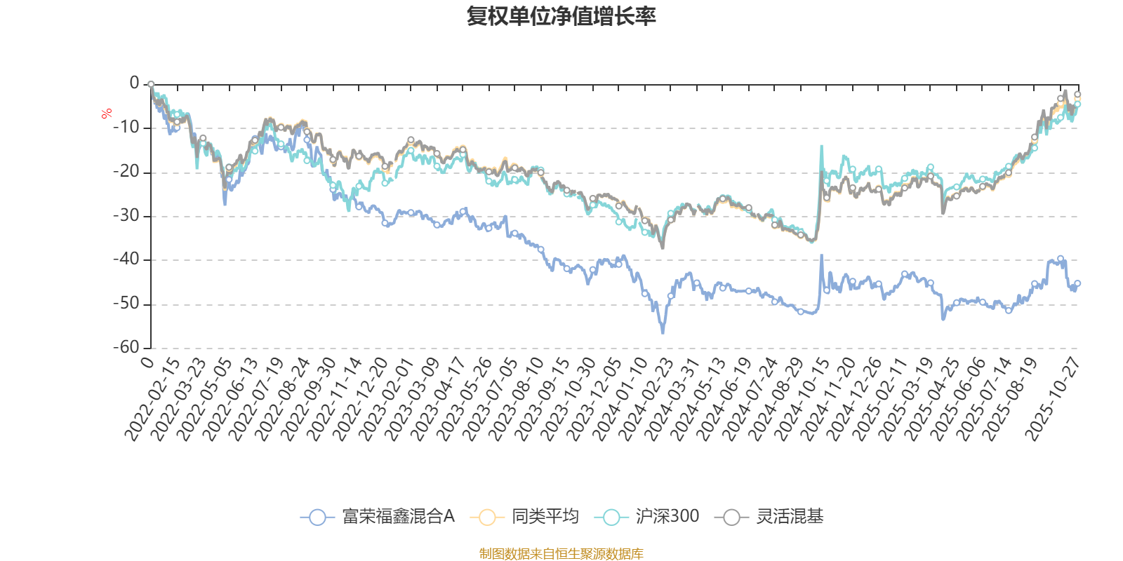 截至10月27日,富荣福鑫混合A近三个月复权单位净值增长率为9.49%,位于同类可比基金766/1287;近半年复权单位净值增长率为8.75%,位于同类可比基金1055/1287;近一年复权单位净值增长率为0.14%,位于同类可比基金1241/1287;近三年复权单位净值增长率为-25.67%,位于同类可比基金1242/1286。