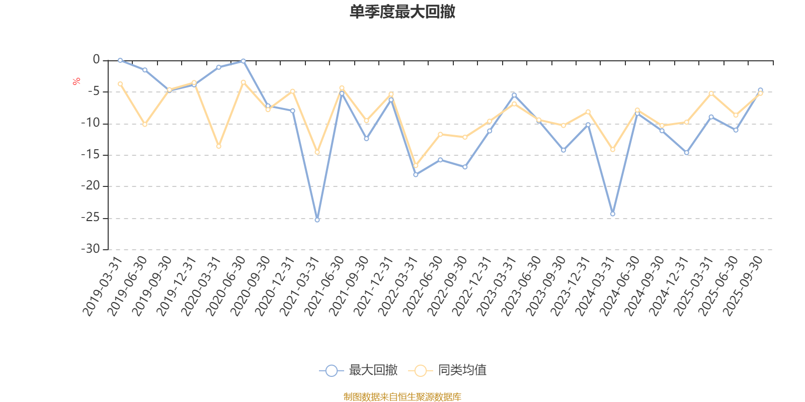 通过所选区间该基金净值增长率分位图,可以观察该基金与同类基金业绩比较情况。图为坐标原点到区间内某时点的净值增长率在同类基金中的分位数。