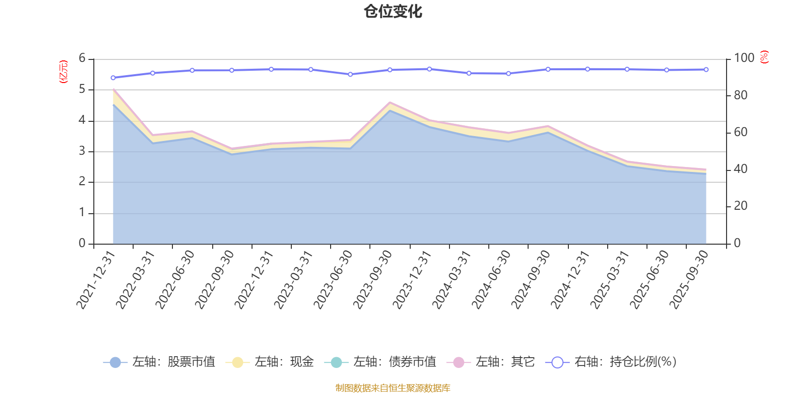 据定期报告数据统计,近三年平均股票仓位为93.76%,同类平均为85.66%。2023年末基金达到94.53%的最高仓位,2021年末最低,为89.83%。