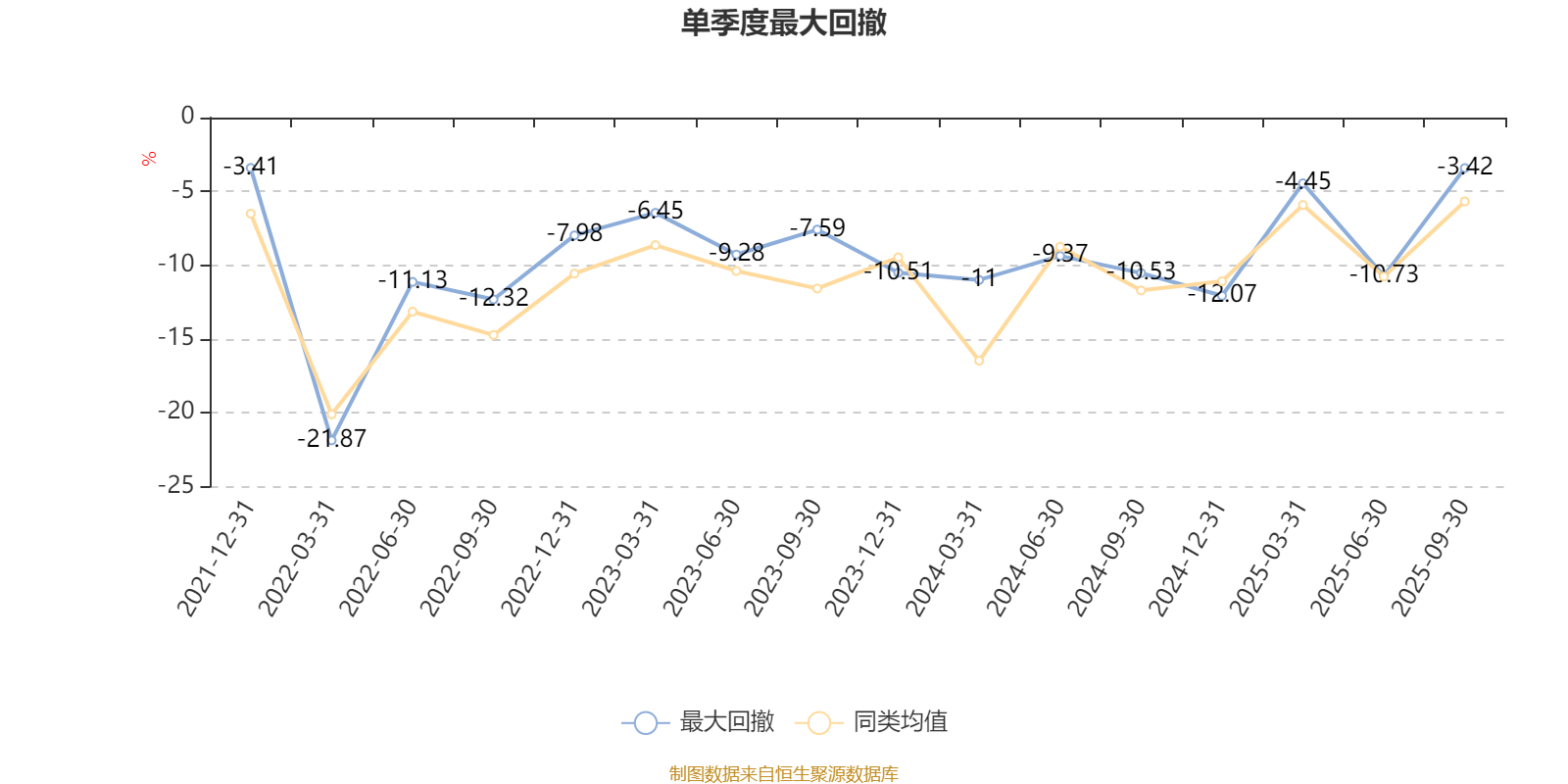 截至10月27日,基金近三年最大回撤为23.44%,同类可比基金排名41/513。单季度最大回撤出现在2022年一季度,为21.87%。
