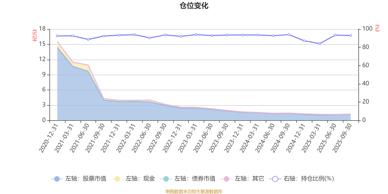据定期报告数据统计,近三年平均股票仓位为92%,同类平均为88.27%。2024年三季度末基金达到93.99%的最高仓位,2025年一季度末最低,为84.14%。