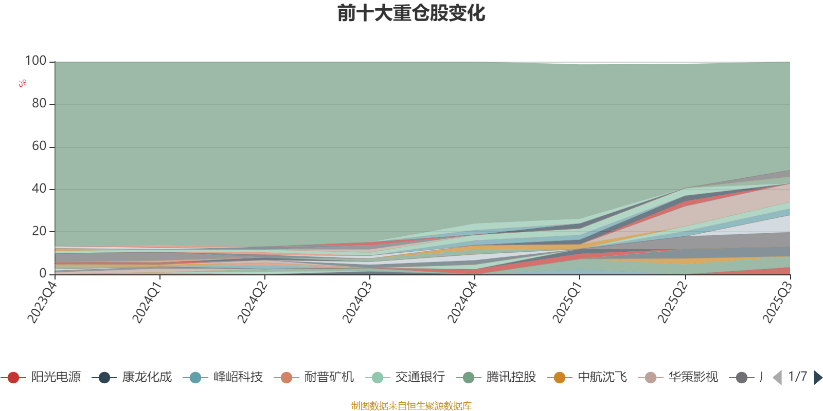 截至2025年三季度末,基金十大重仓股分别是信达生物、寒武纪、百济神州、腾讯控股、石药集团、阳光电源、先导智能、药明康德、阿里巴巴-W、科伦博泰生物-B。