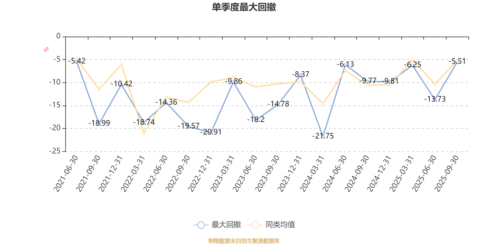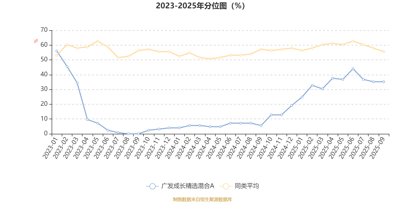 通过所选区间该基金净值增长率分位图,可以观察该基金与同类基金业绩比较情况。图为坐标原点到区间内某时点的净值增长率在同类基金中的分位数。