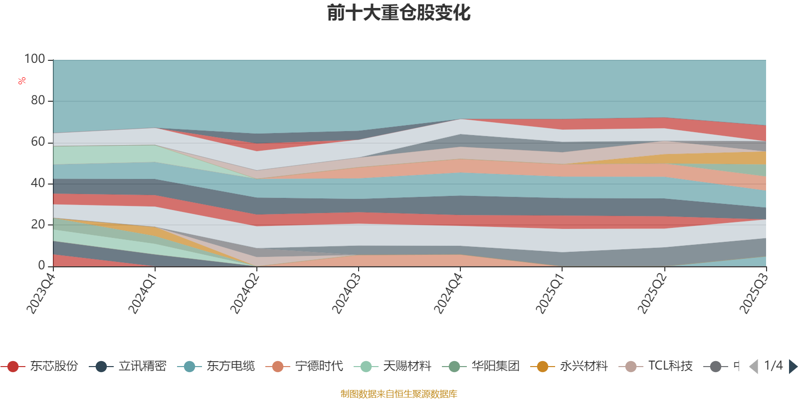 该基金持股集中度较高,近2年前十大重仓股集中度长期超过60%。截至2025年三季度末,基金十大重仓股分别是比亚迪、信达生物、小米集团-W、兆易创新、江淮汽车、阿里巴巴-W、中科曙光、赛力斯、三花智控、东方电缆。