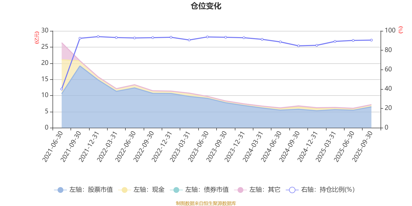 据定期报告数据统计,近三年平均股票仓位为90.31%,同类平均为85.99%。2021年末基金达到94.09%的最高仓位,2021年上半年末最低,为40.02%。