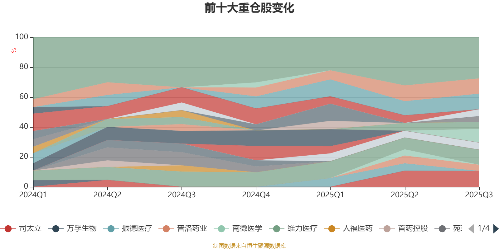 该基金持股集中度较高。截至2025年三季度末,基金十大重仓股分别是司太立、天宇股份、同和药业、维力医疗、健民集团、马应龙、澳华内镜、卫信康、普洛药业、葵花药业。