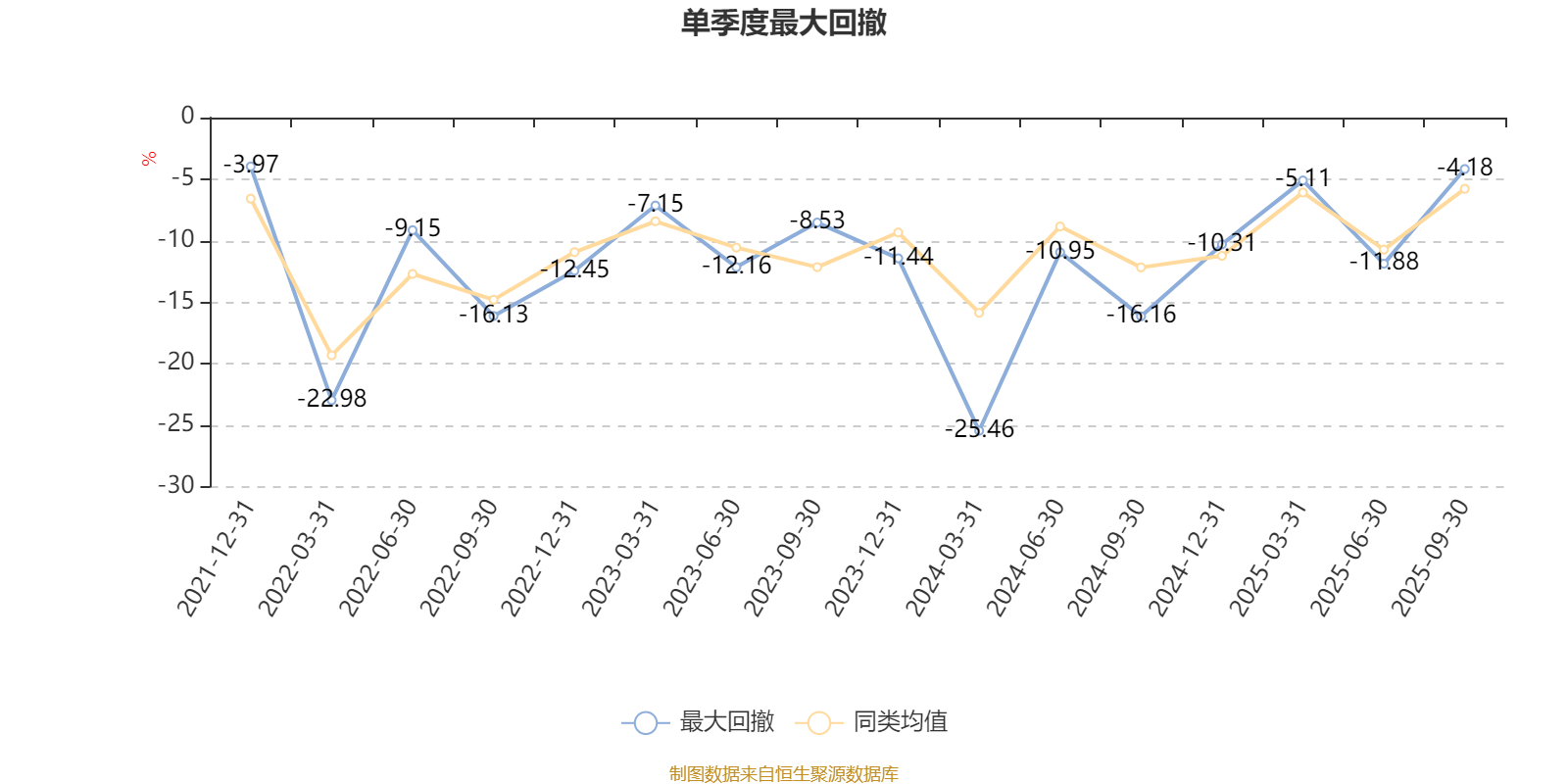 截至10月27日,基金近三年最大回撤为36.89%,同类可比基金排名174/363。单季度最大回撤出现在2024年一季度,为25.46%。