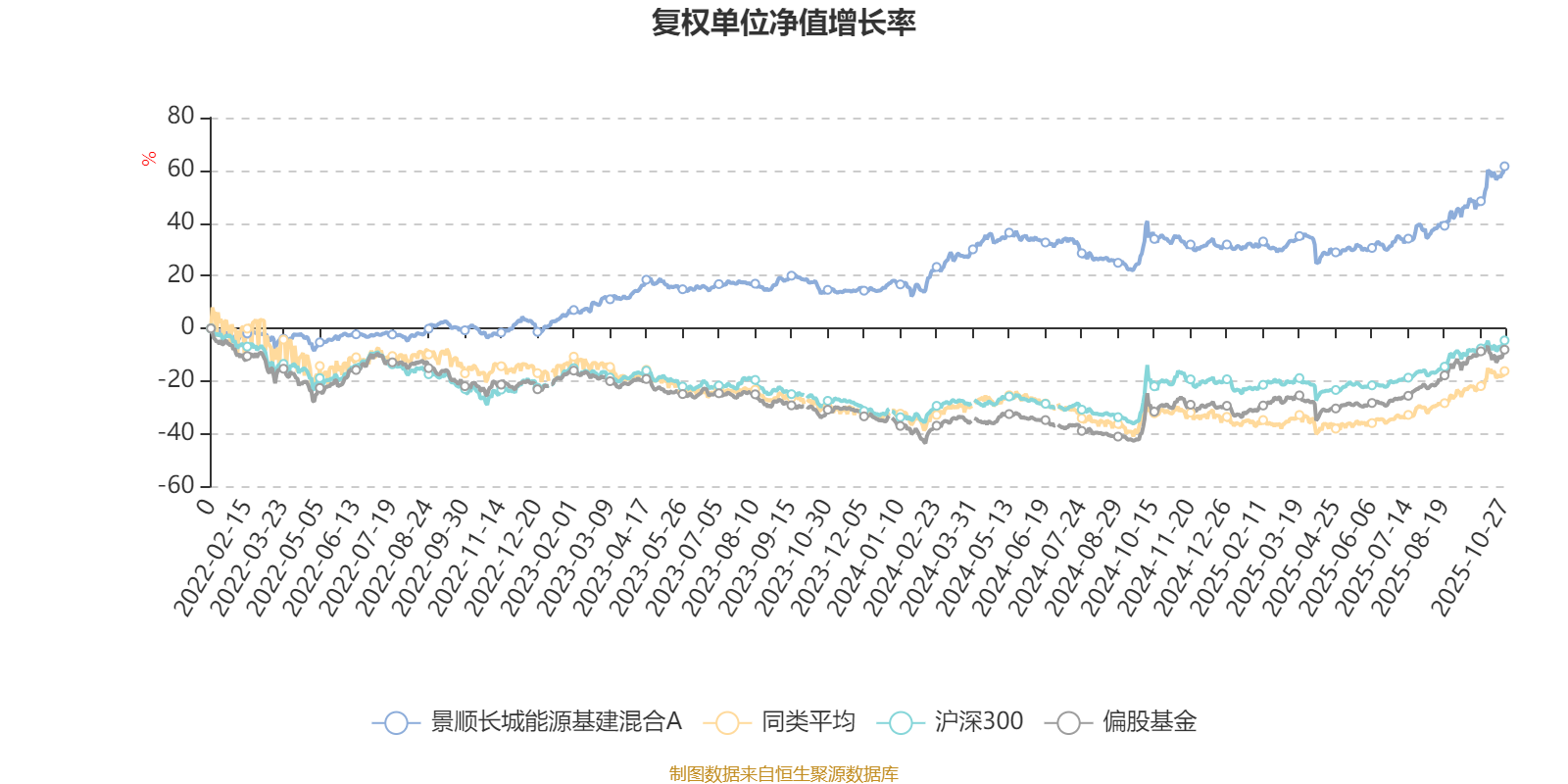截至10月27日,景顺长城能源基建混合A近三个月复权单位净值增长率为16.15%,位于同类可比基金30/49;近半年复权单位净值增长率为25.35%,位于同类可比基金33/49;近一年复权单位净值增长率为20.57%,位于同类可比基金35/42;近三年复权单位净值增长率为63.75%,位于同类可比基金3/29。