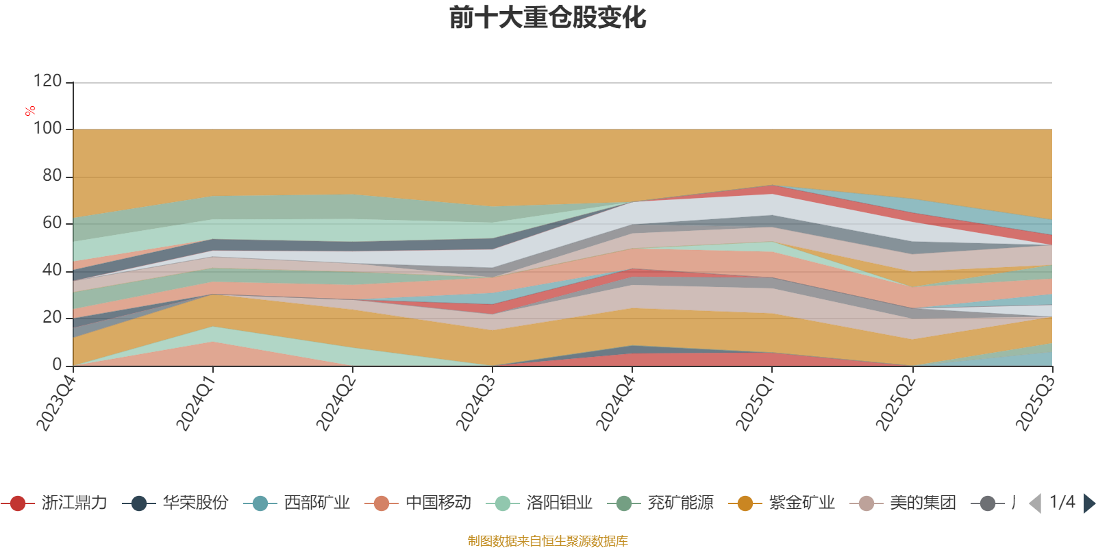 该基金持股集中度较高,近2年前十大重仓股集中度长期超过60%。截至2025年三季度末,基金十大重仓股分别是紫金矿业、久立特材、神火股份、株冶集团、西部矿业、铜陵有色、电投能源、巨星科技、江瀚新材、兖矿能源。