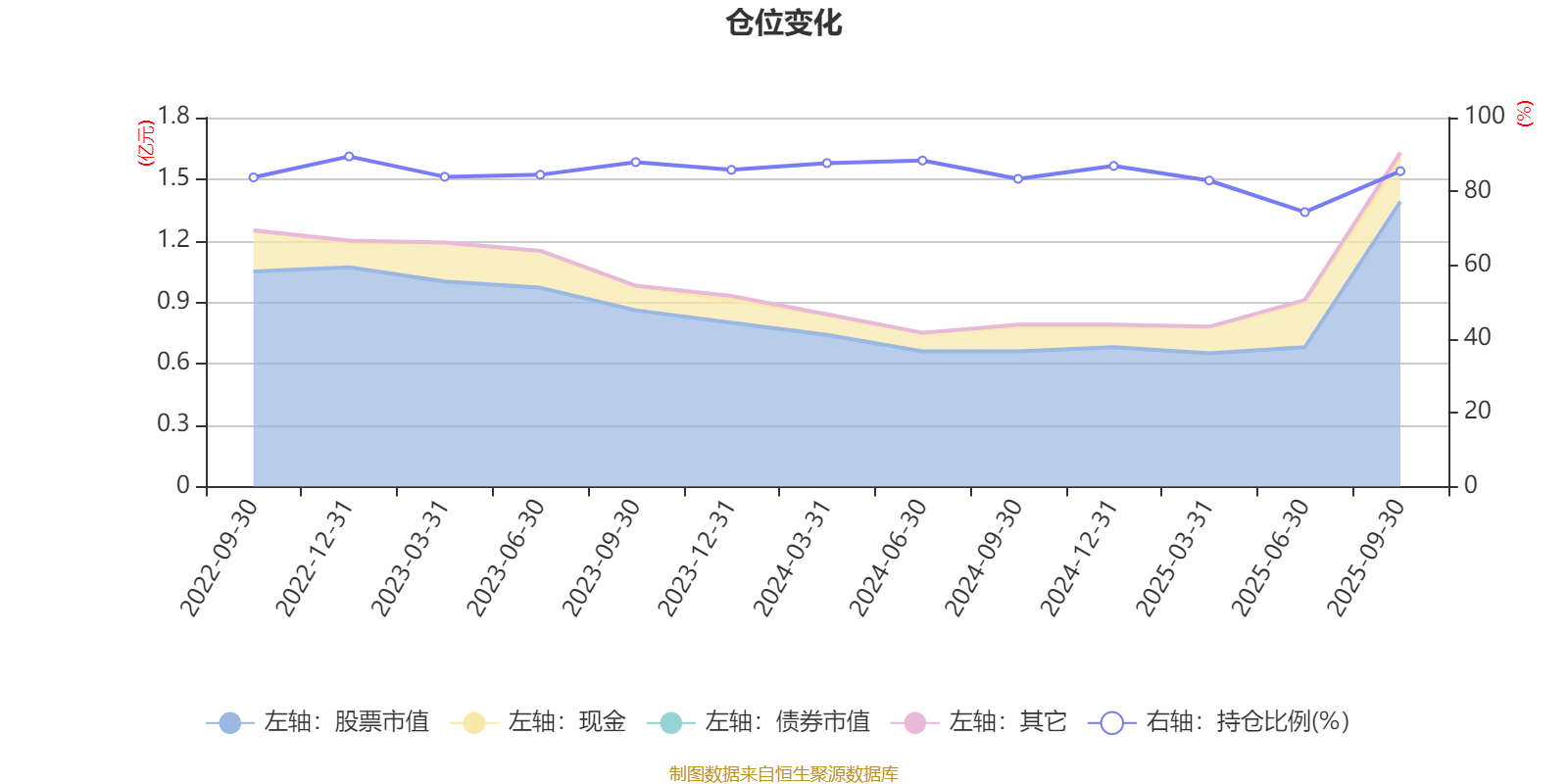 据定期报告数据统计,近三年平均股票仓位为85.07%,同类平均为83.73%。2022年末基金达到89.48%的最高仓位,2025年上半年末最低,为74.39%。