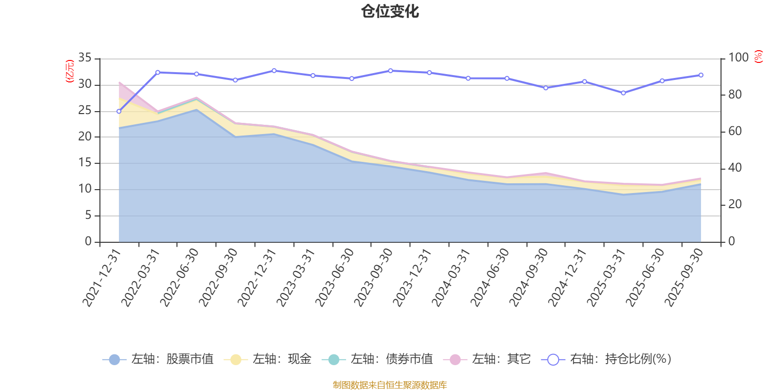 据定期报告数据统计,近三年平均股票仓位为89.06%,同类平均为85.99%。2022年末基金达到93.39%的最高仓位,2021年末最低,为71.22%。