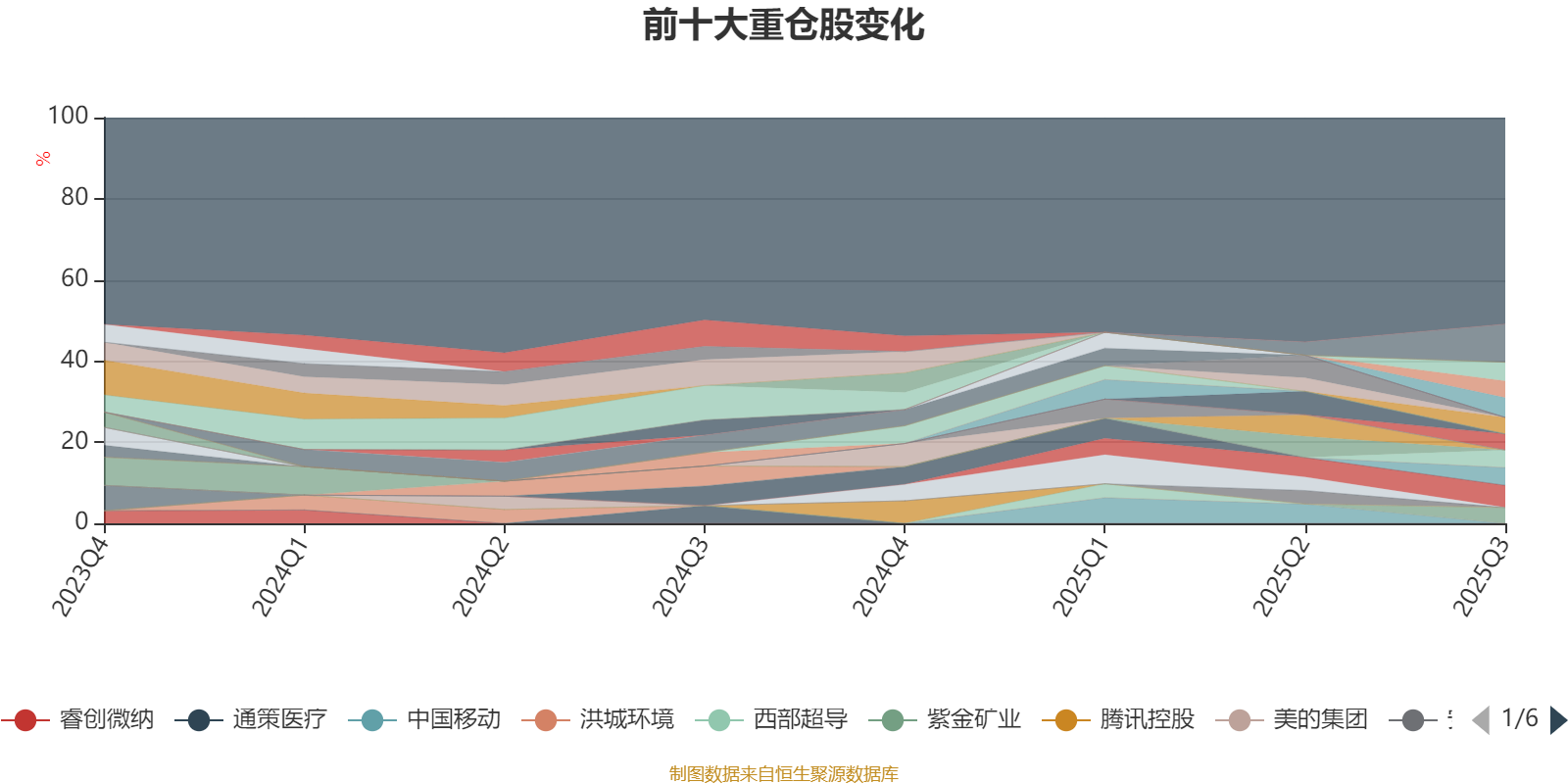 截至2025年三季度末,基金十大重仓股分别是华友钴业、宁德时代、阿里巴巴-W、东鹏饮料、极兔速递-W、紫光国微、申通快递、圆通速递、蔚蓝锂芯、紫金矿业。