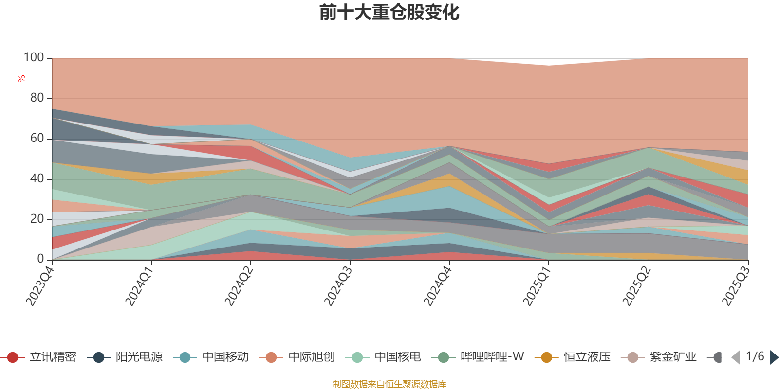 该基金持股集中度较高。截至2025年三季度末,基金十大重仓股分别是腾讯控股、华虹半导体、中芯国际、阿里巴巴-W、芯原股份、金蝶国际、海目星、盛科通信、晶泰控股、快手-W。