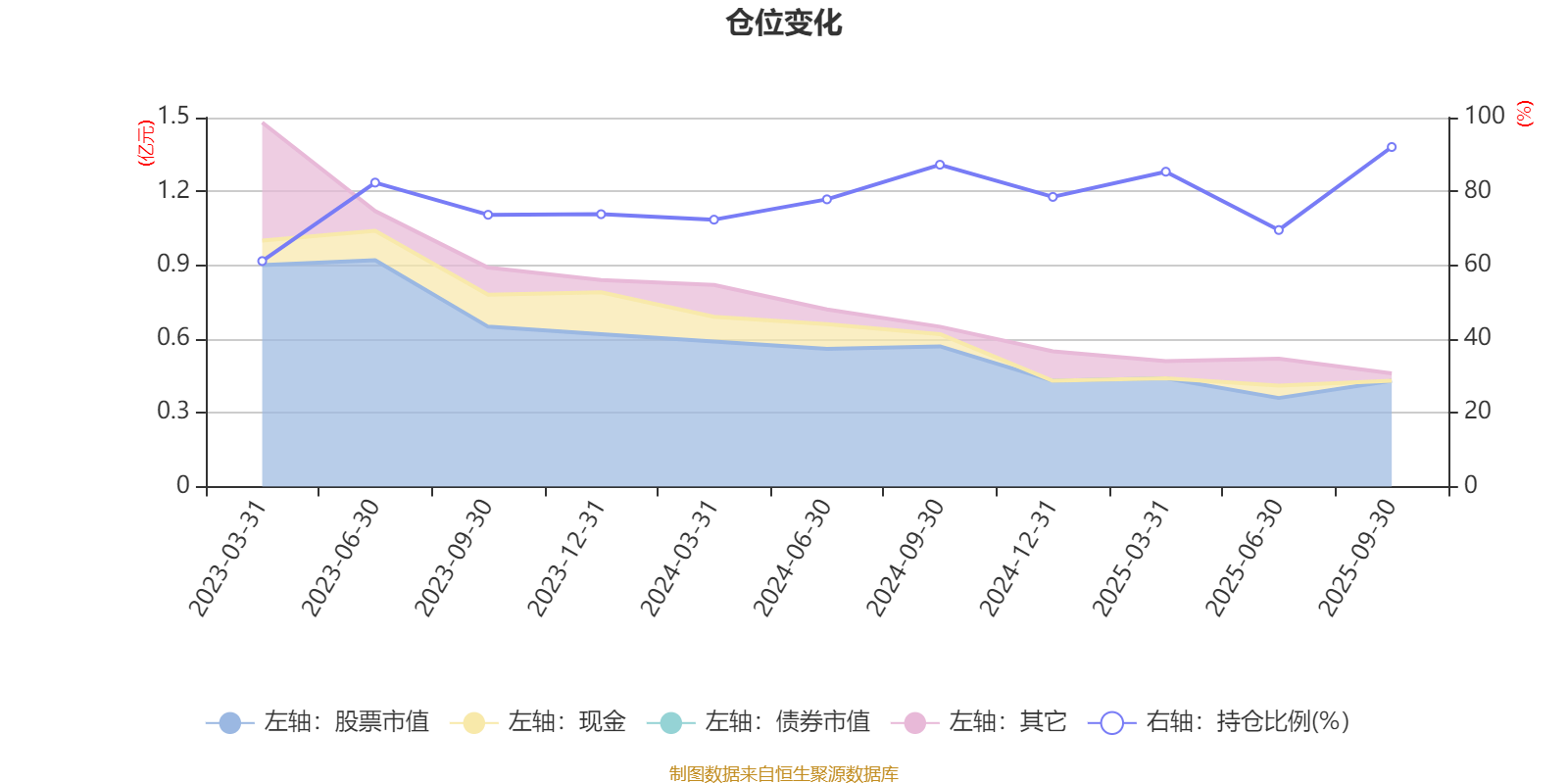 据定期报告数据统计,成立以来平均股票仓位为77.62%,同类平均为67.37%。2025年三季度末基金达到92.03%的最高仓位,2023年一季度末最低,为61.12%。