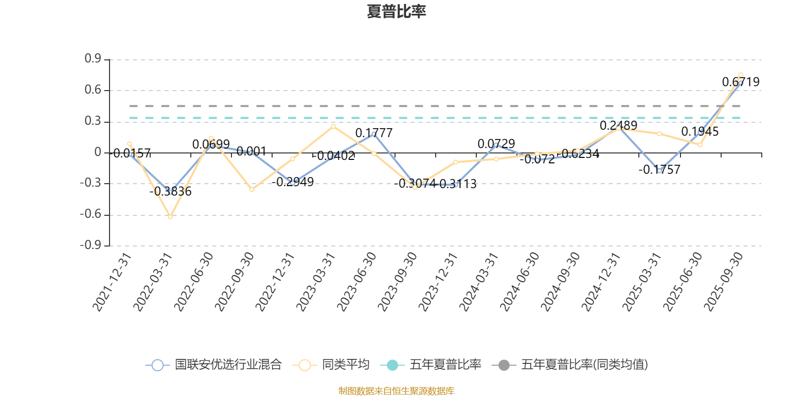 截至9月30日,基金近三年夏普比率为0.4839,位于同类可比基金141/159。